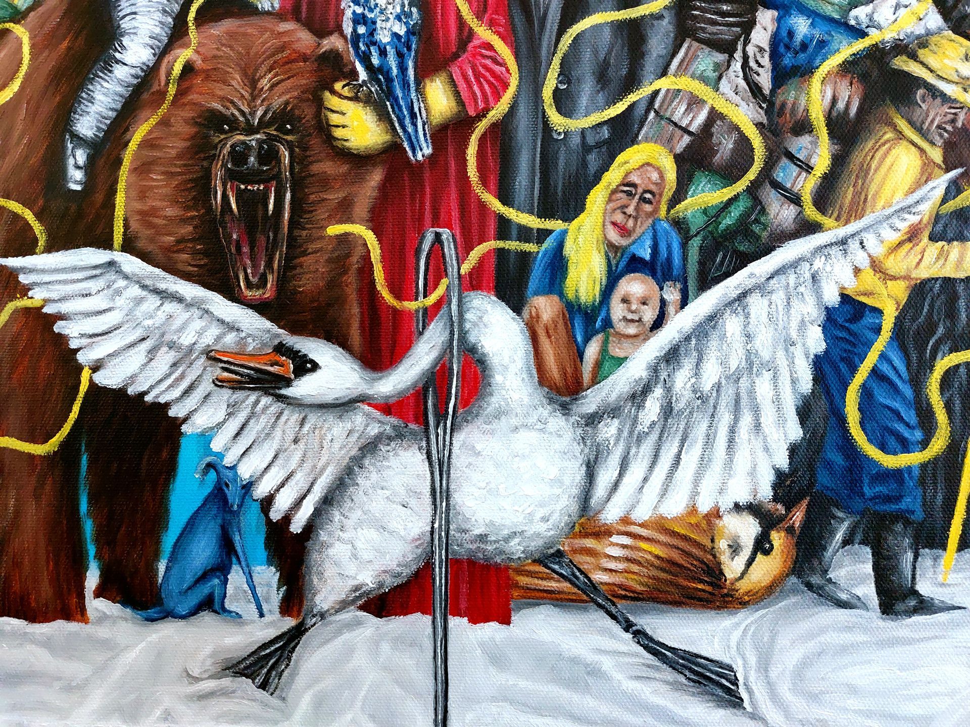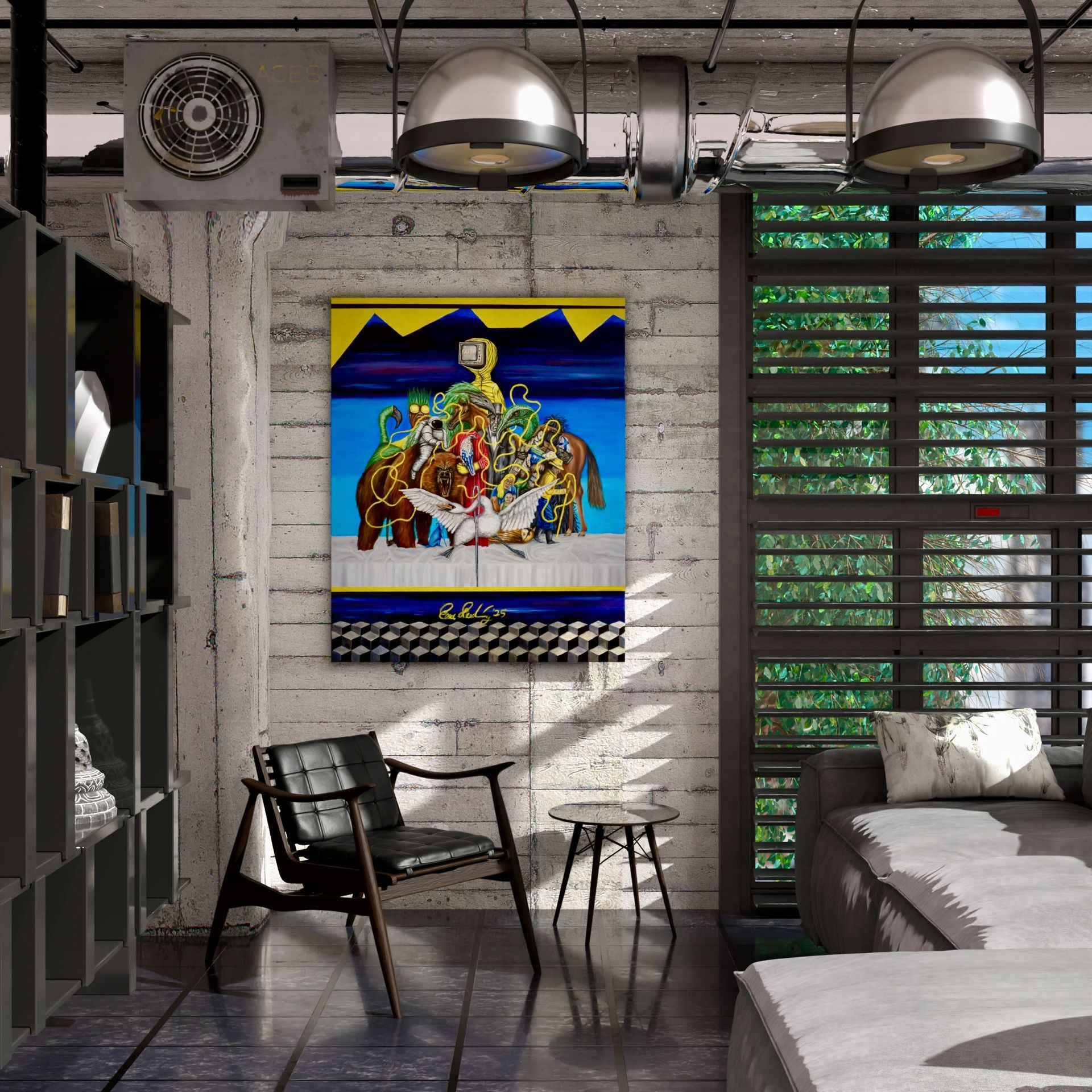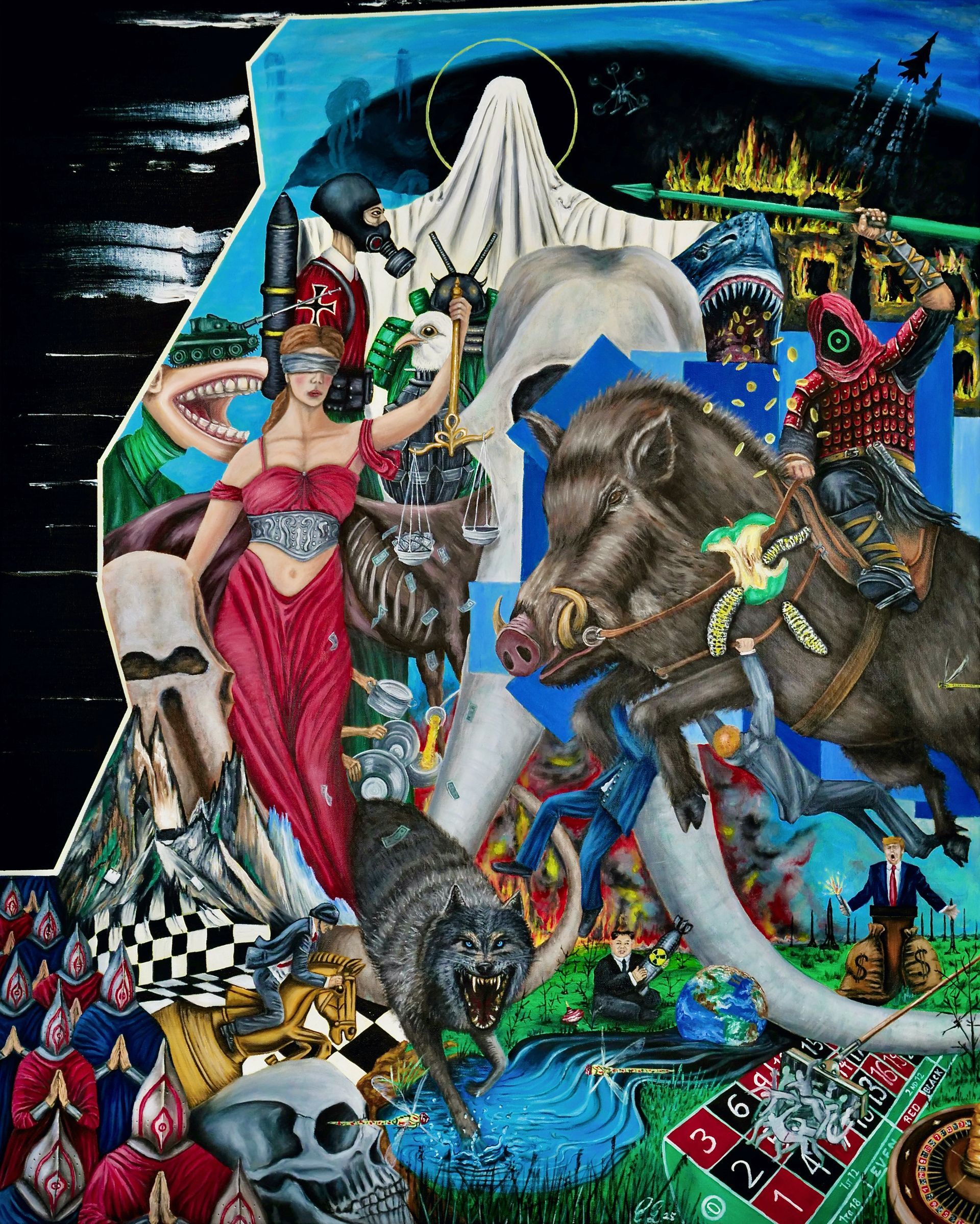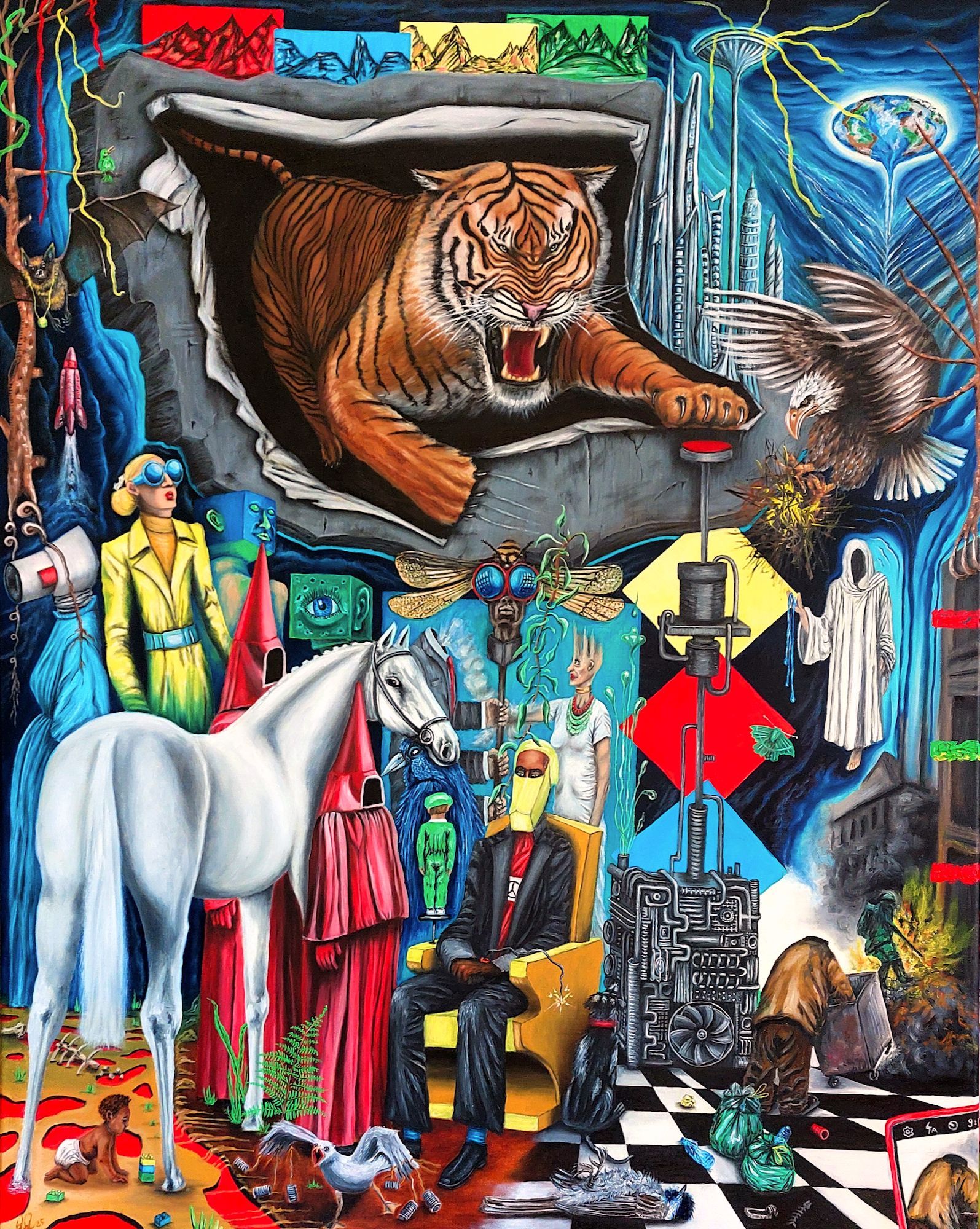I have been fascinated by surrealism since childhood. I find it to be the ideal form of expression for depicting these multilayered themes in a coded way.