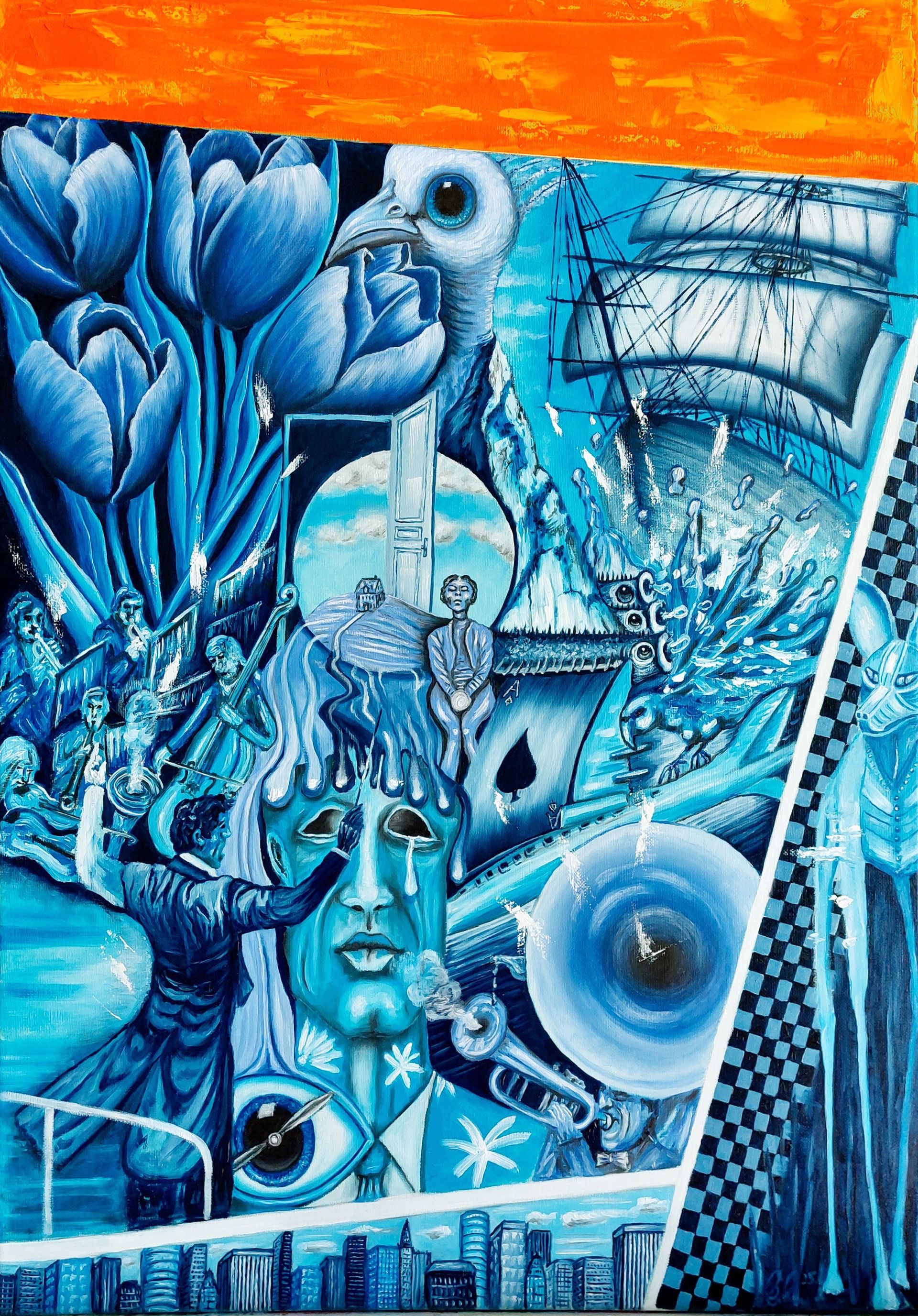 In my paintings, I use an expressive color palette to vividly and intensely convey these themes. Through my work, I aim to encourage viewers to reflect and take them on an emotional and intellectual journey. I want to open up a dialogue about what makes us human in our society.